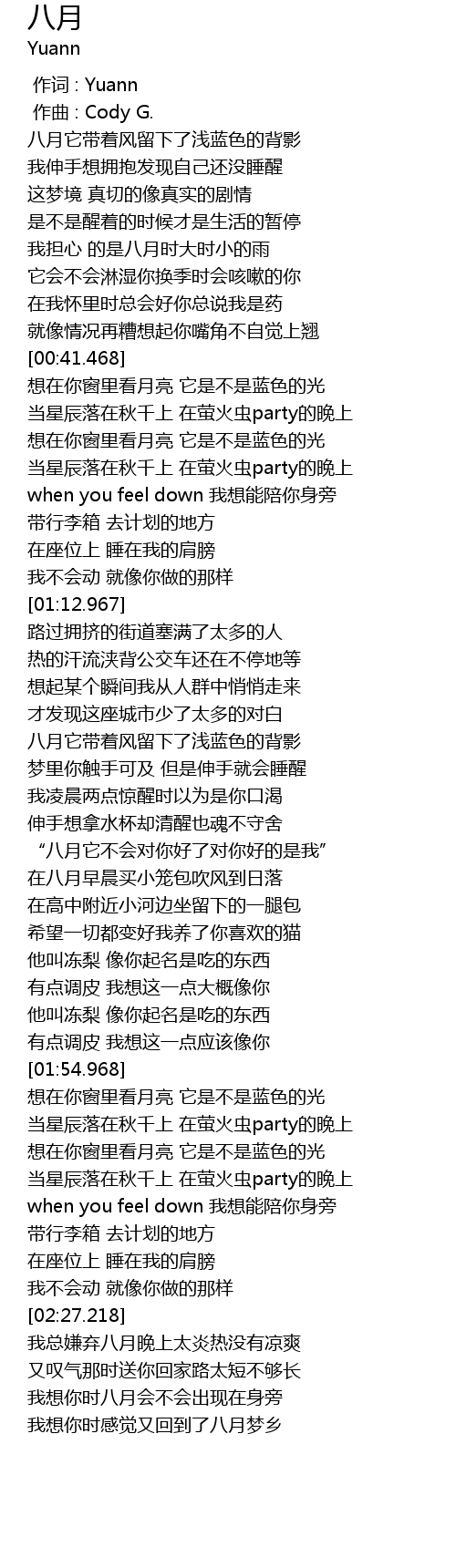 | [01:35.467] | “八月它不会对你好了对你好的是我” |