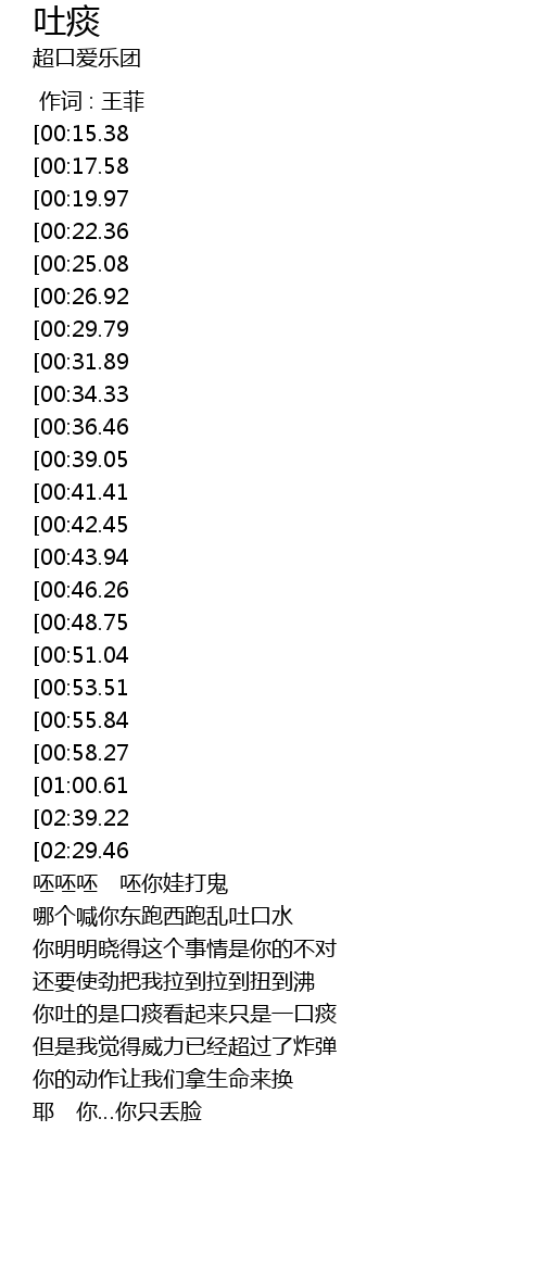 | [02:00.83][00:43.94] | 我不想吐痰 我没时间 |
