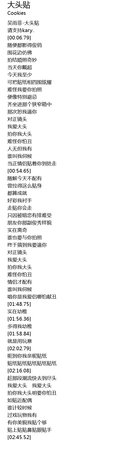 | [00:01.10] | 吴雨菲-大头贴 |