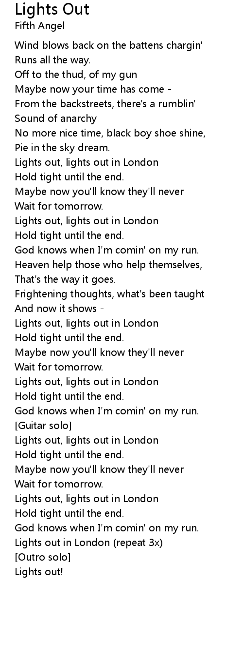 Lights out in London (repeat 3x) |