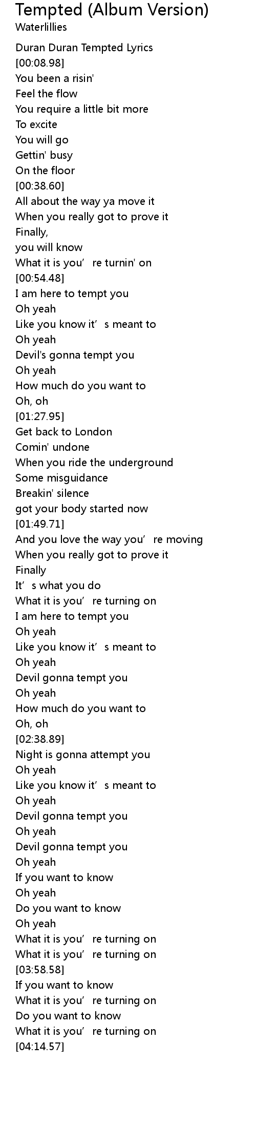 | [00:01.56] | Duran Duran Tempted Lyrics |