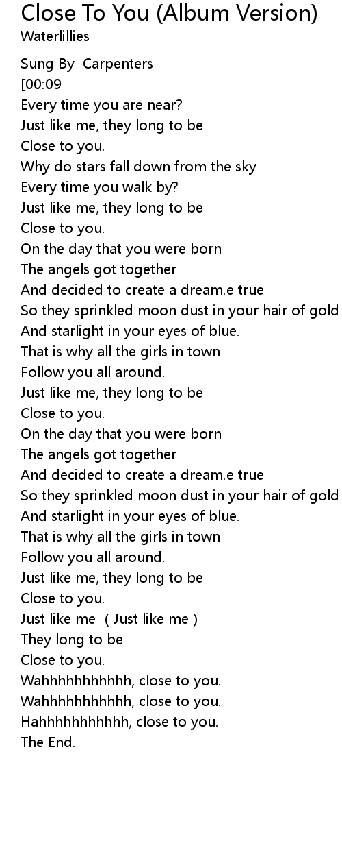 | Song | Close To You (Album Version) |