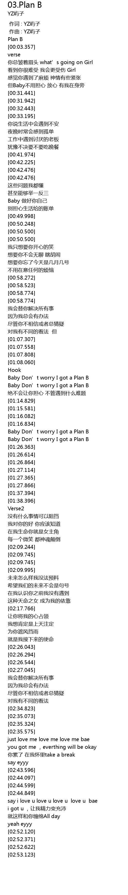 | [01:17.836] | Baby Don' t worry I got a Plan B |
