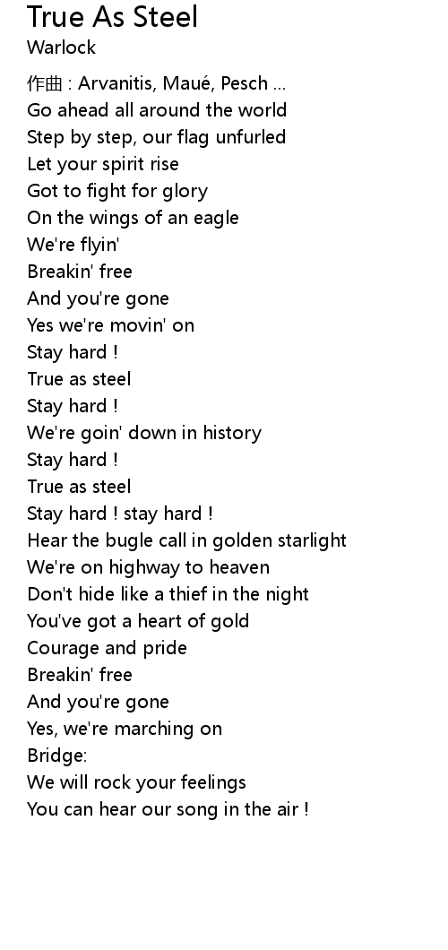 | Song | True As Steel |