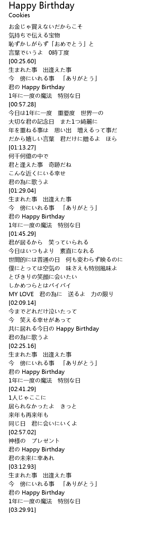 | [01:37.71] | 君の Happy Birthday |