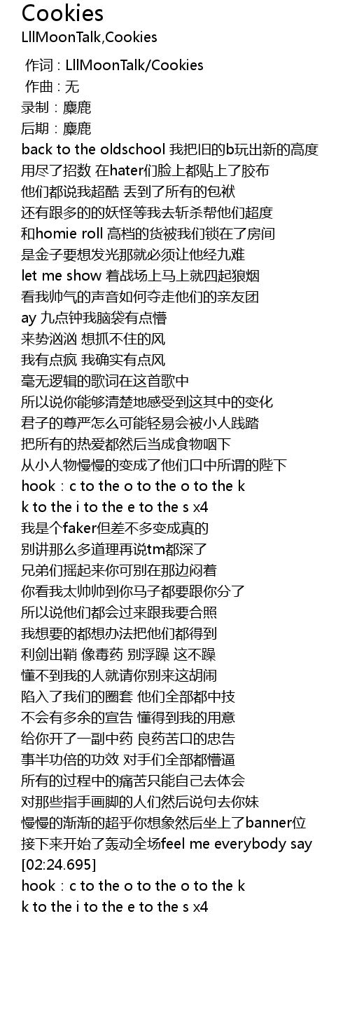 | [00:00.000] | zuò cí : LllMoonTalk Cookies |