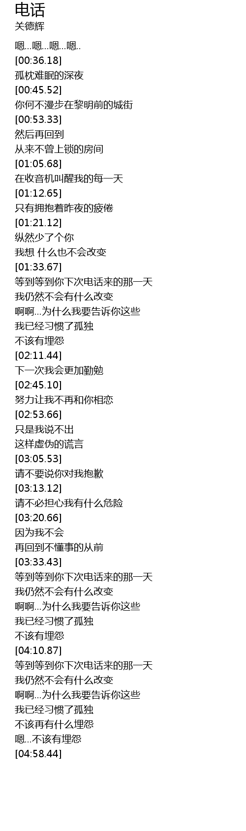 | [04:12.27] | 等到等到你下次电话来的那一天 |
