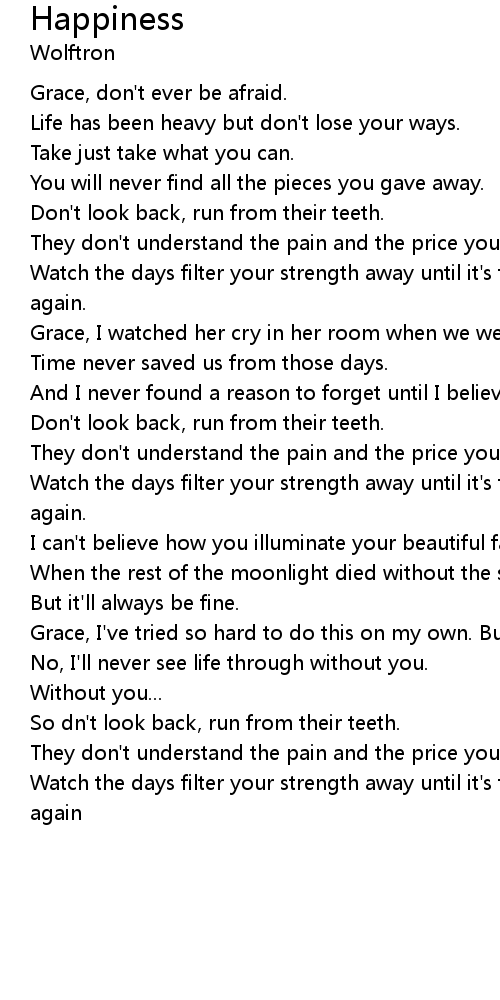 Watch the days filter your strength away until it's too late to see you happy again. |