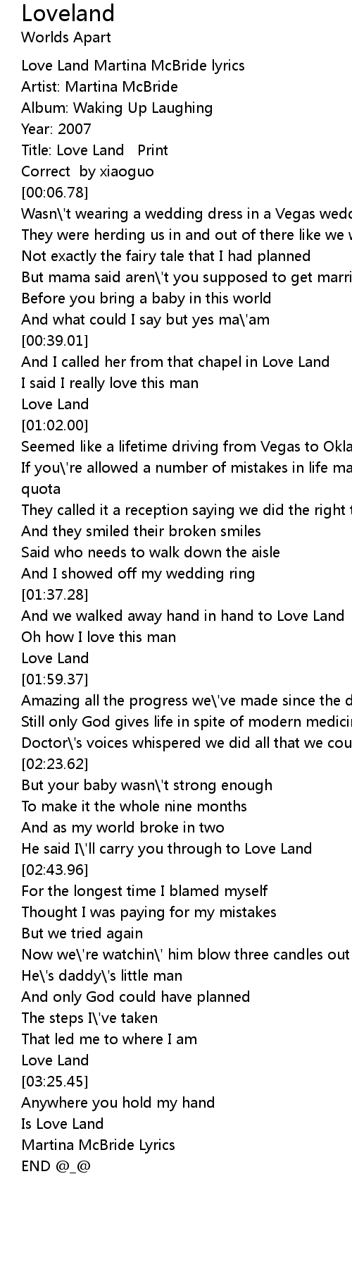 Love Land Martina McBride lyrics |