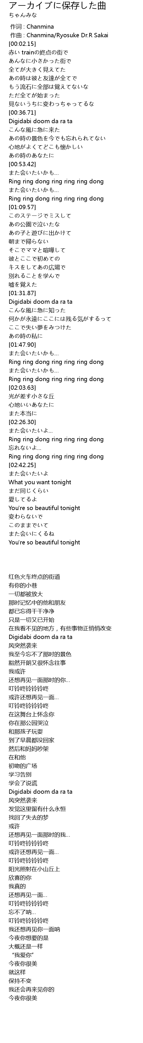 | [00:01.00] | 作曲 : Chanmina/Ryosuke Dr.R Sakai |