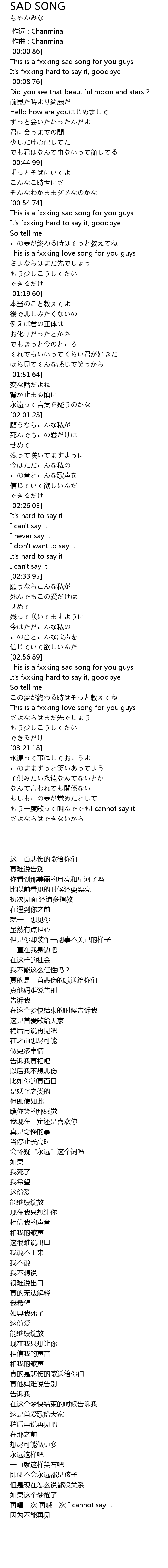 | [00:56.52] | This is a fxxking sad song for you guys |