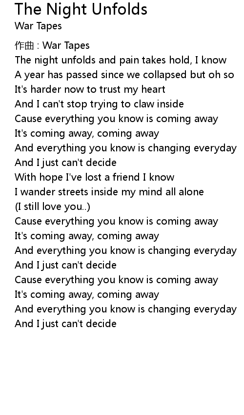 | The night unfolds and pain takes hold, I know | |