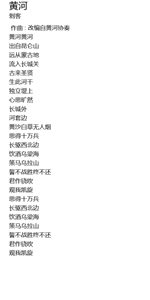 | [00:00.00] | 作曲 : 改编自黄河协奏 |