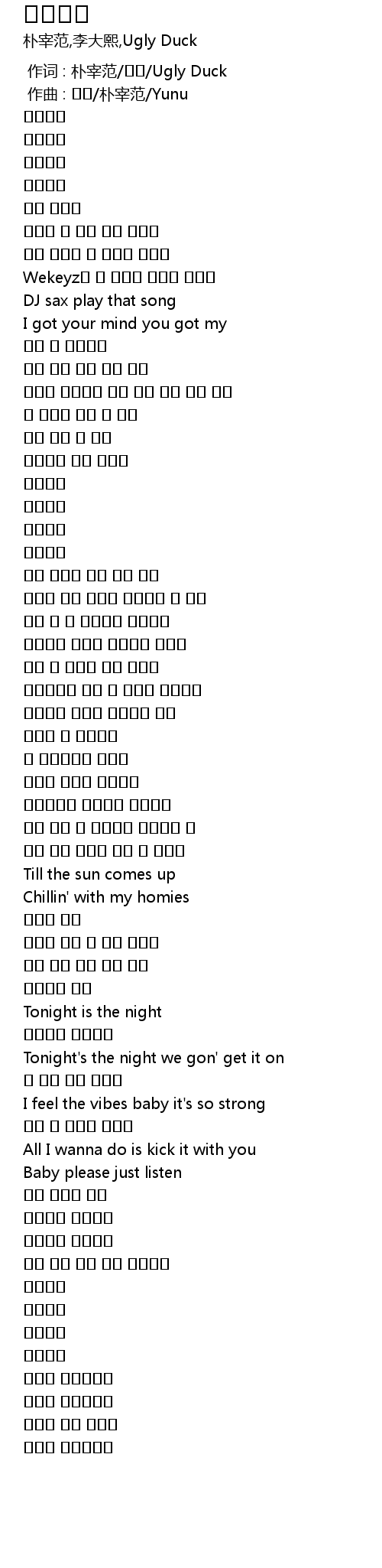 | [00:00.00] | 作词 : 朴宰范/기린/Ugly Duck |