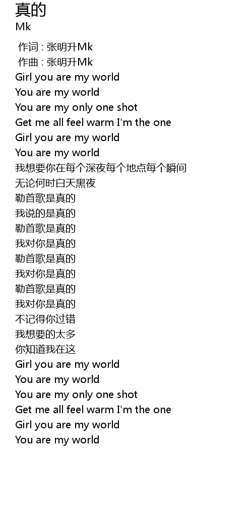 | [00:55.32] | 我对你是真的 |