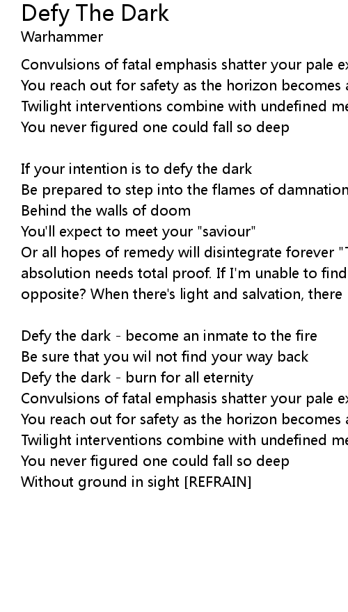 Or all hopes of remedy will disintegrate forever "To believe in purity and absolution needs total proof. If I'm unable to find such, why not try the opposite? When there's light and salvation, there needs to be darkness And in the dark, I now want to wander recklessly." [REFRAIN] |