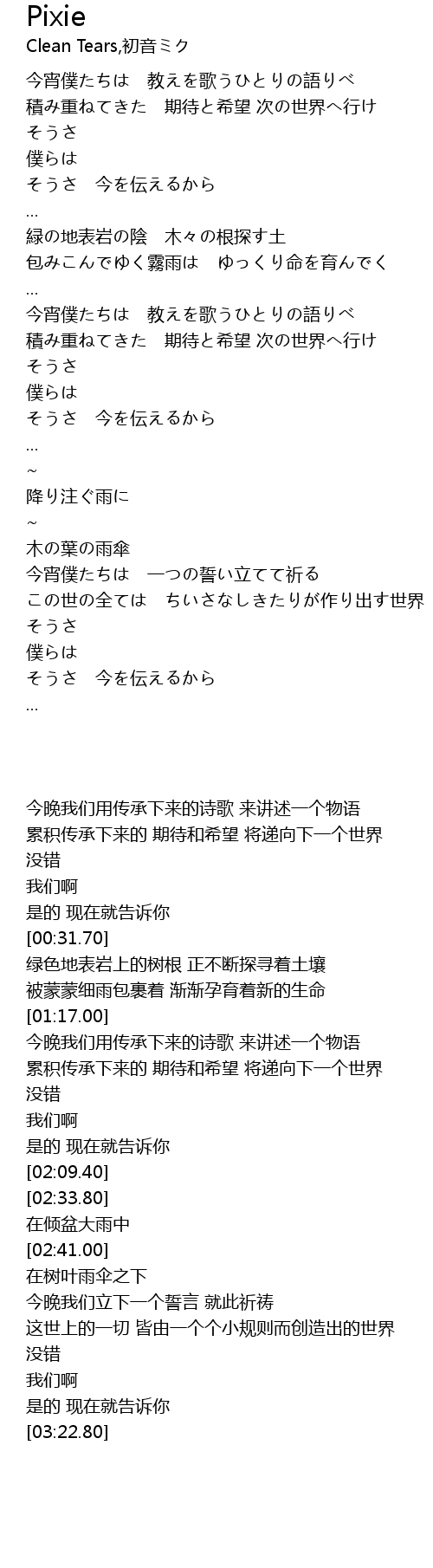 | [02:54.00] | この世の全ては ちいさなしきたりが作り出す世界 |