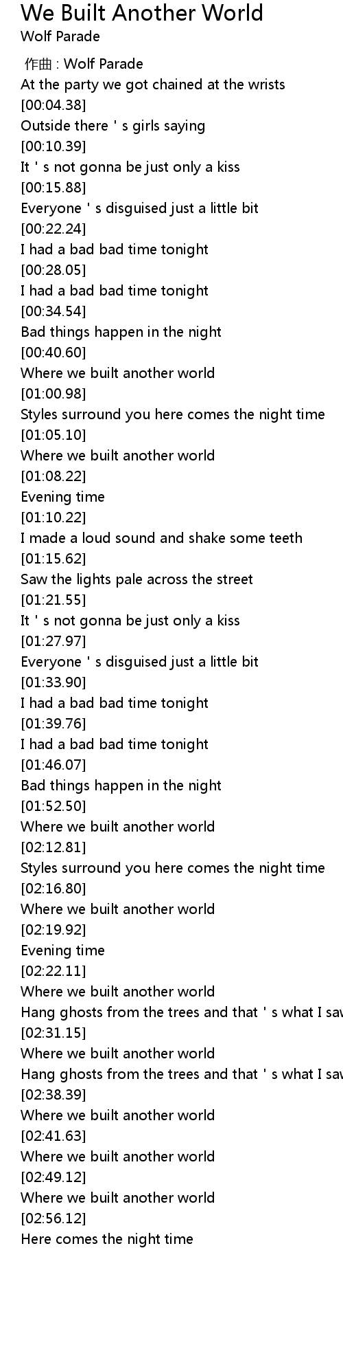 | [00:00.00] | zuò qǔ : Wolf Parade |