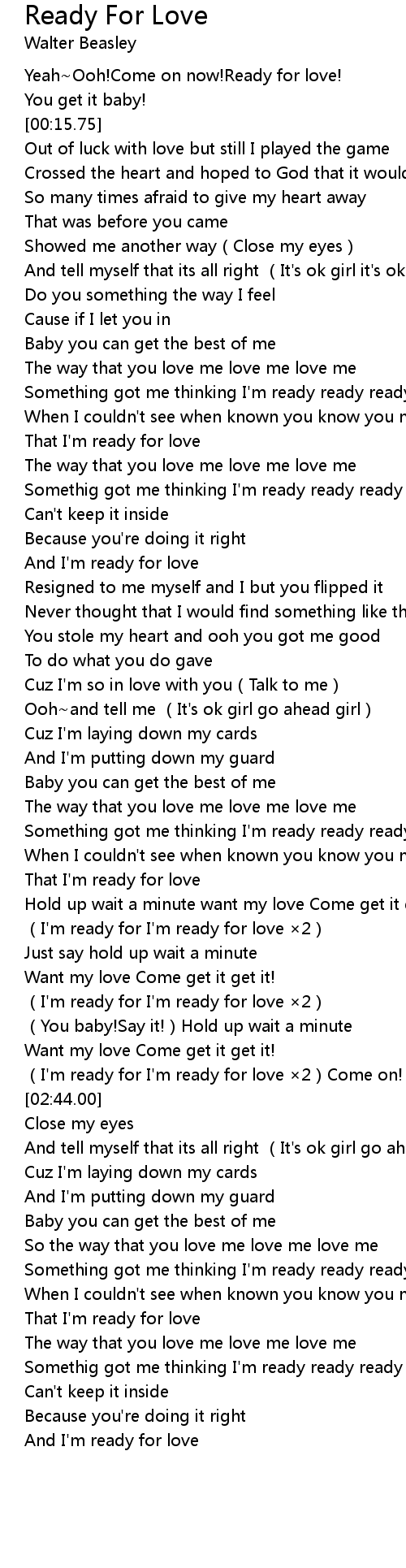 | [02:23.82] | (I'm ready for I'm ready for love ×2) |