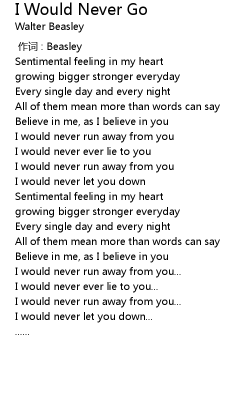 | Song | I Would Never Go |