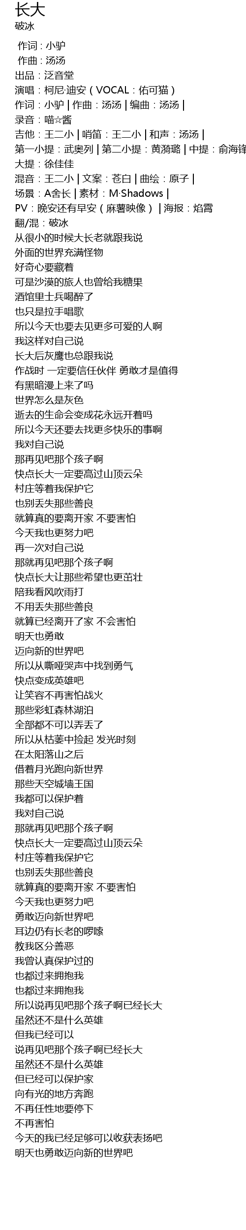 | [00:03.463] | 作词:小驴 | 作曲:汤汤 | 编曲:汤汤 | 录音:喵☆酱 |
