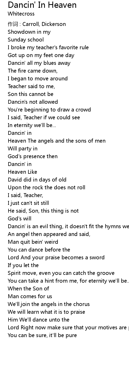 | Song | Dancin' In Heaven |