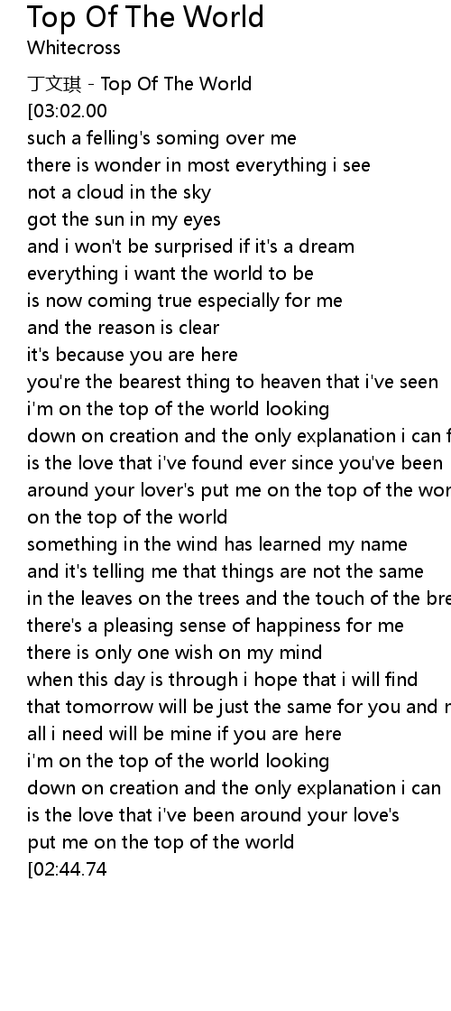 | [03:05.47][02:44.74] | on the top of the world |