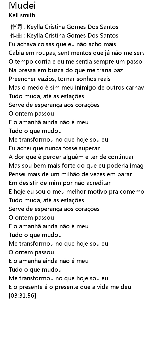 | [00:00.00] | 作词 : Keylla Cristina Gomes Dos Santos |