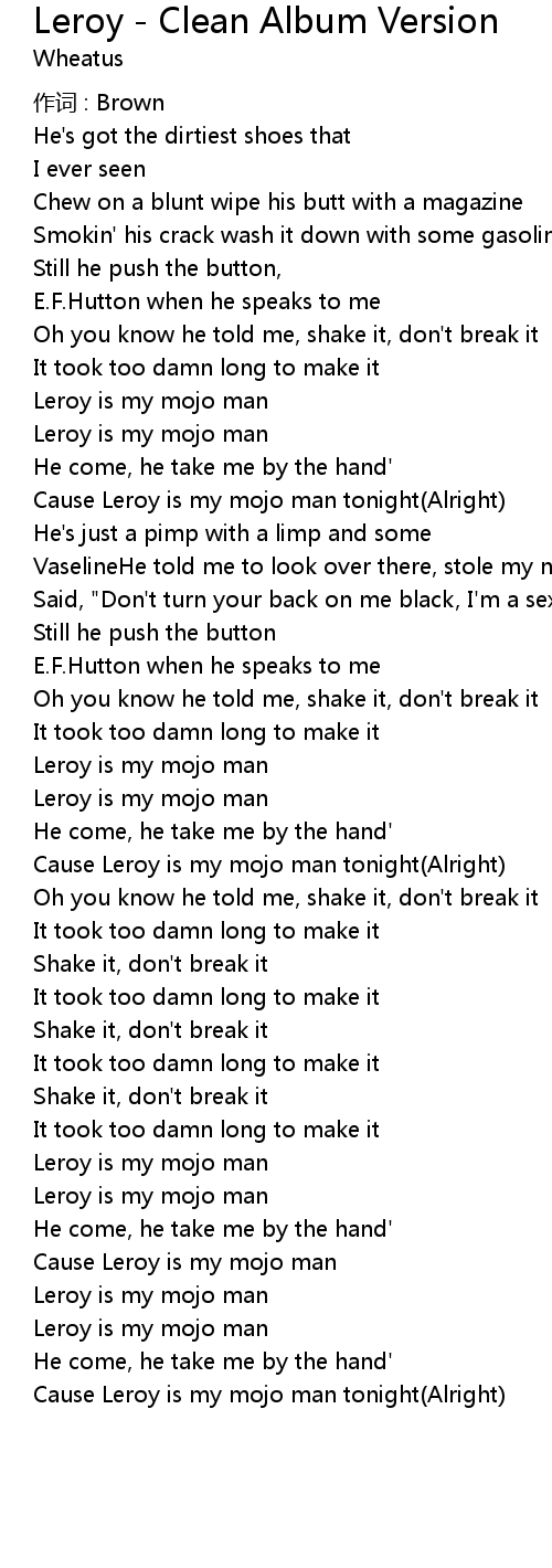 | Cause Leroy is my mojo man tonight(Alright) | |