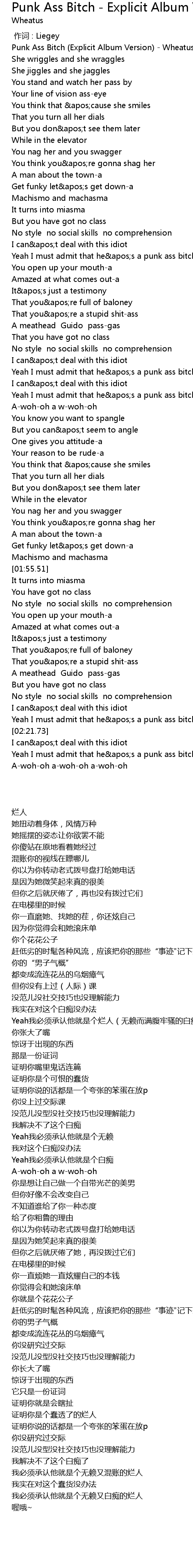 | [00:00.60] | Punk Ass Bitch Explicit Album Version Wheatus |