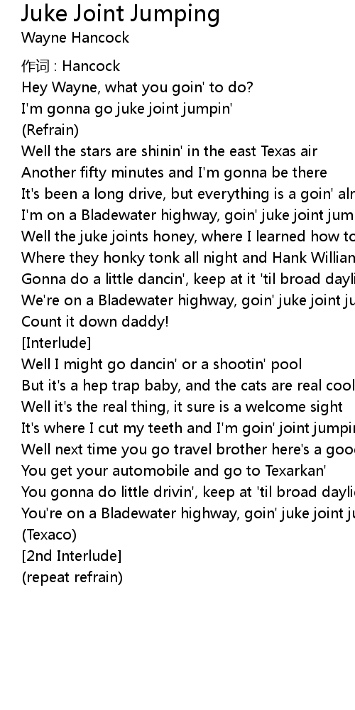 | I'm on a Bladewater highway, goin' juke joint jumping tonight | |