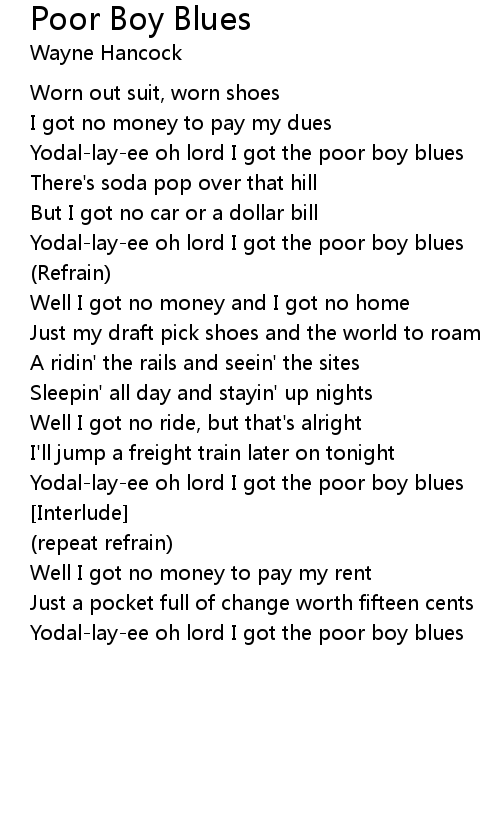 Yodal-lay-ee oh lord I got the poor boy blues |