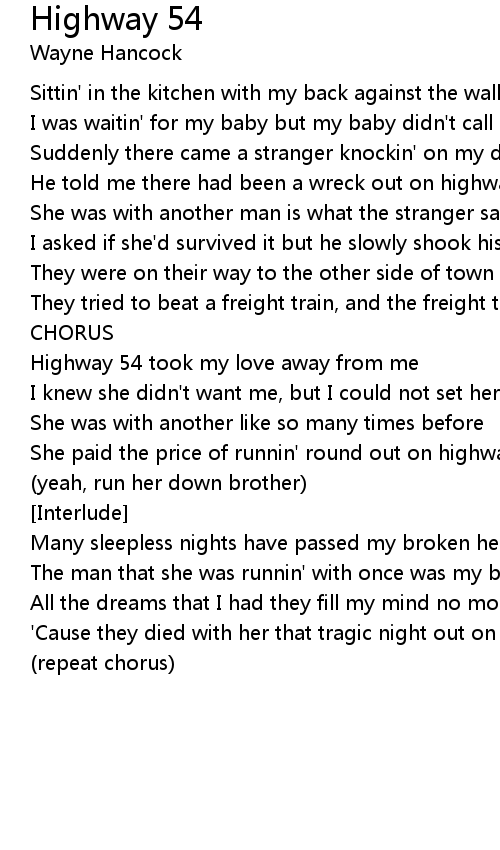 Highway 54 took my love away from me |