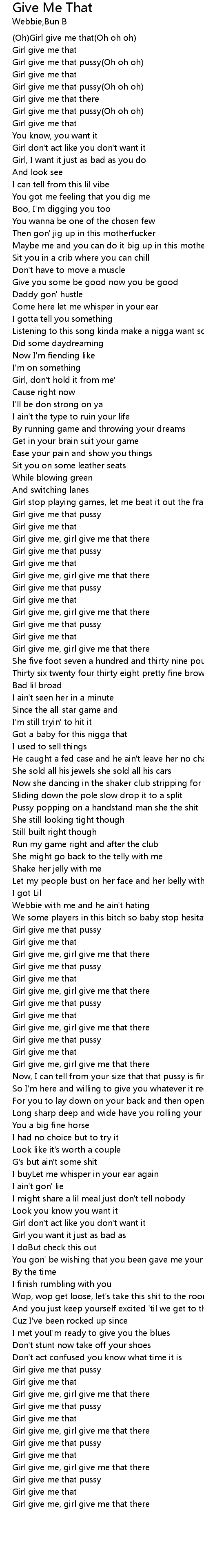 | Girl give me that pussy(Oh oh oh) | |