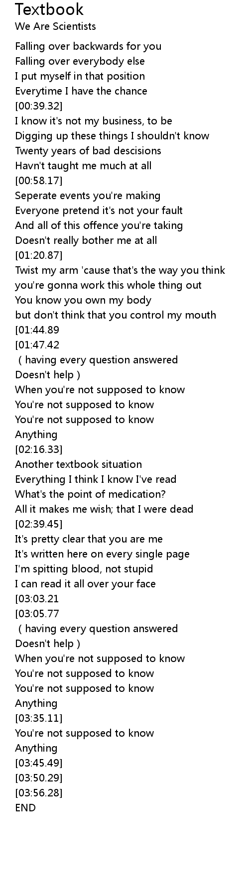 | [02:21.83] | Another textbook situation |
