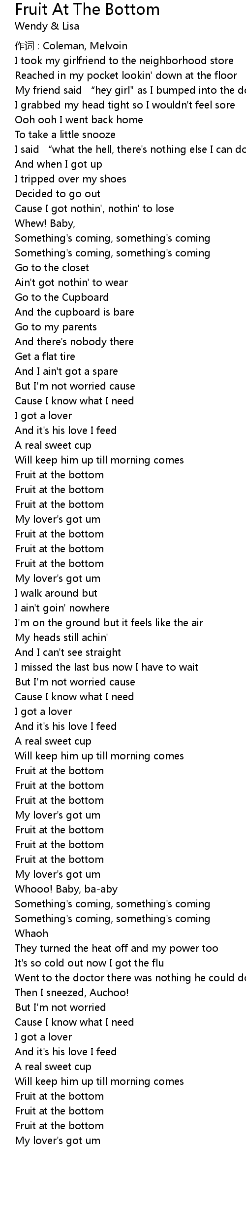 | Song | Fruit At The Bottom |