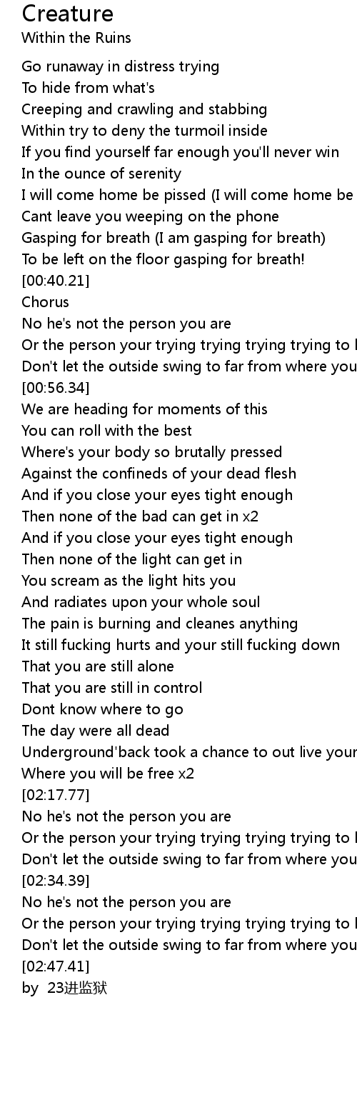 | [00:43.58] | Or the person your trying trying trying trying to be |