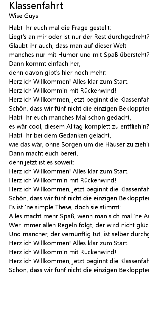 | Herzlich Willkommen, jetzt beginnt die Klassenfahrt! | |