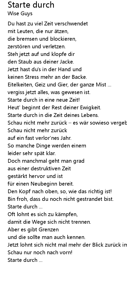 | Schau nicht mehr zurück – es wär sowieso vergebens. | |