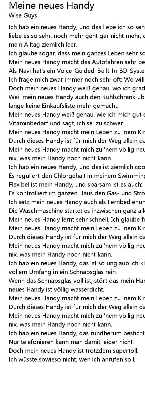 | Ich hab ein neues Handy, und das liebe ich so sehr, ich glaub, ich | |
