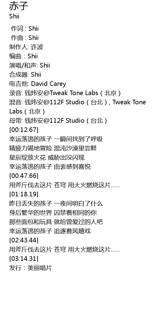 | [00:00.000] | 作词 : Shii |