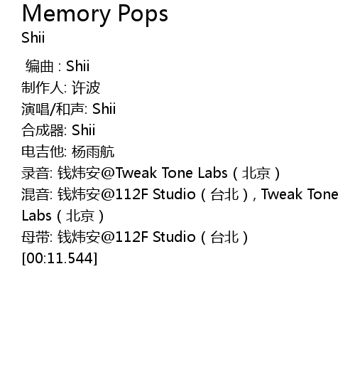 | [00:08.511] | 混音: 钱炜安@112F Studio(台北), Tweak Tone Labs(北京) |