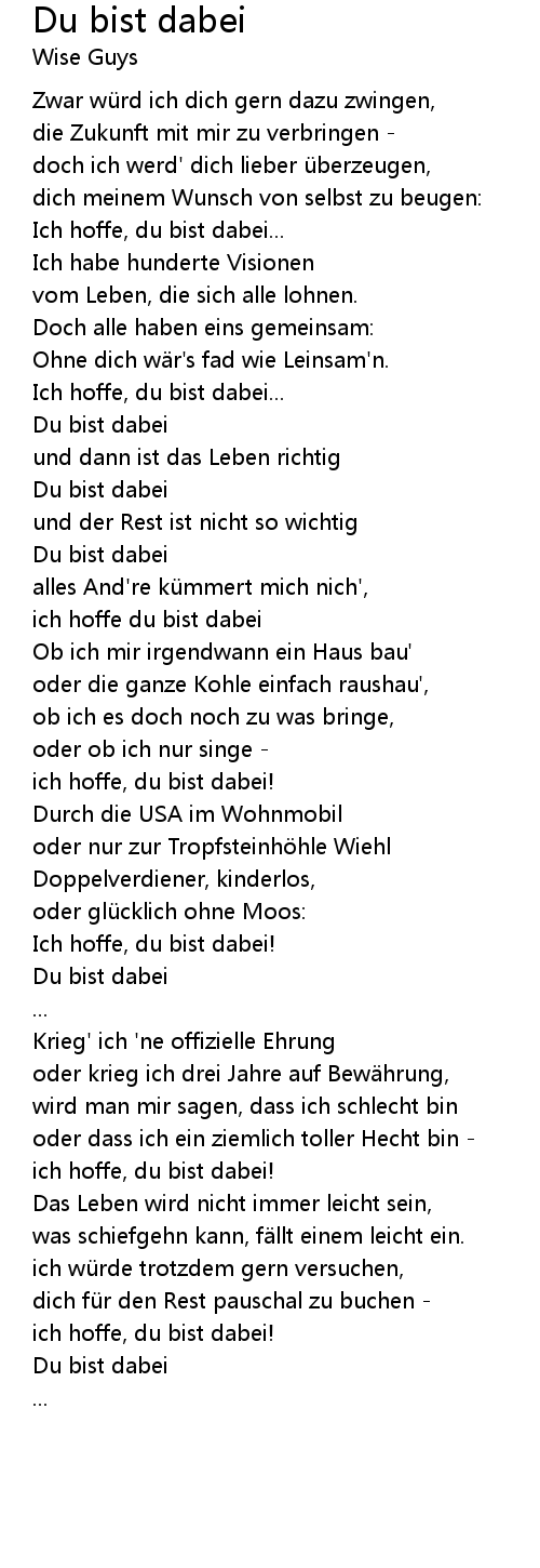| Ohne dich w r' s fad wie Leinsam' n. | |