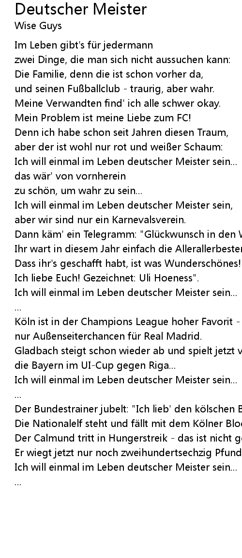 | Ich will einmal im Leben deutscher Meister sein, | |