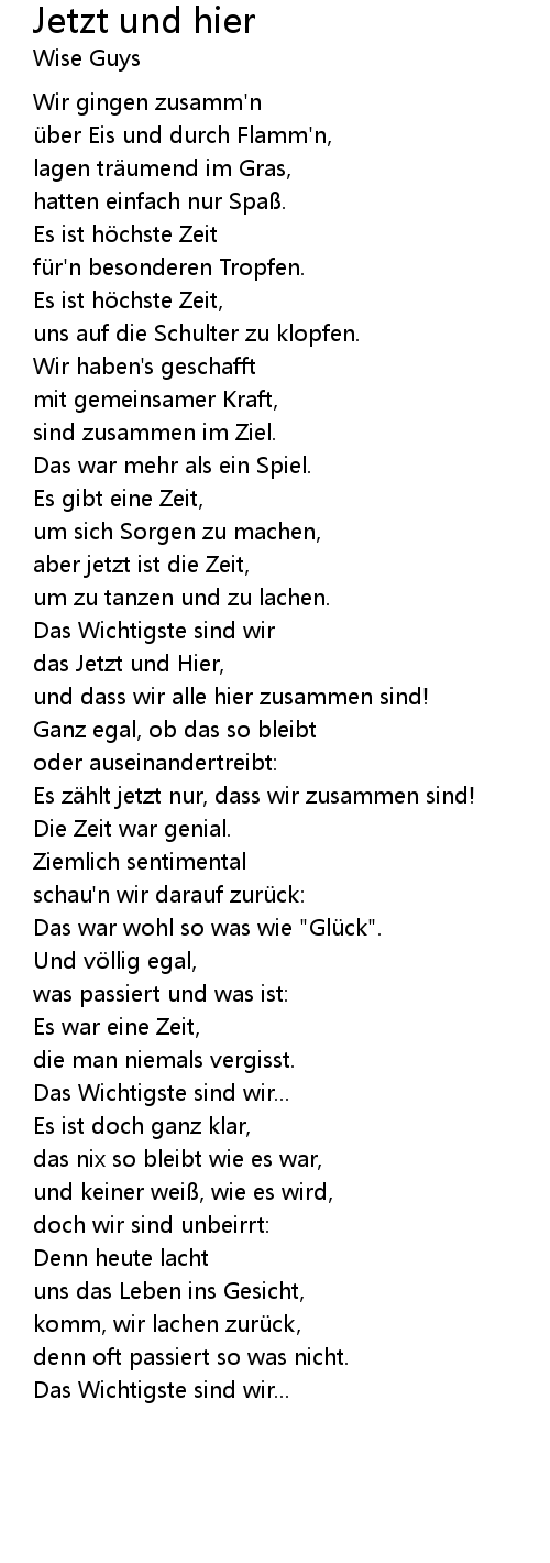 | das Jetzt und Hier, | |