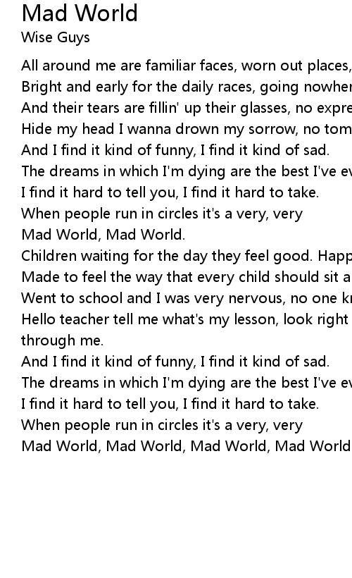 | Mad World, Mad World, Mad World, Mad World. |