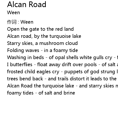 | Alcan Road the turquoise lake and starry skies mushroom clouds folding waves foamy tides of salt and brine |