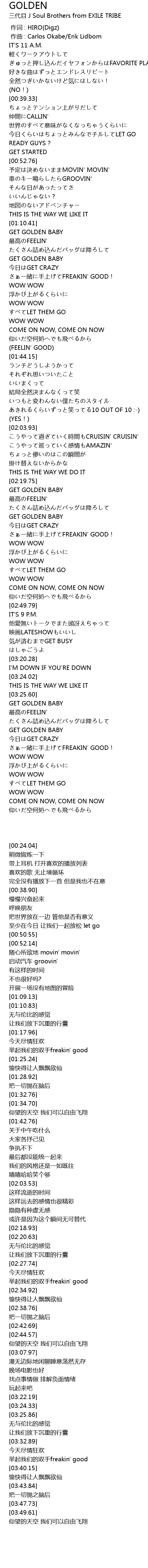 | [03:32.89] | GET GOLDEN BABY |