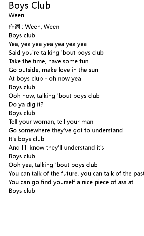 | Ooh yea, talking ' bout boys club | |