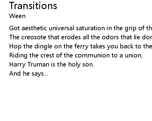 | Hop the dingle on the ferry takes you back to the dimension that's just begun. | |